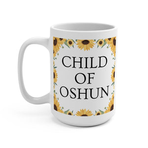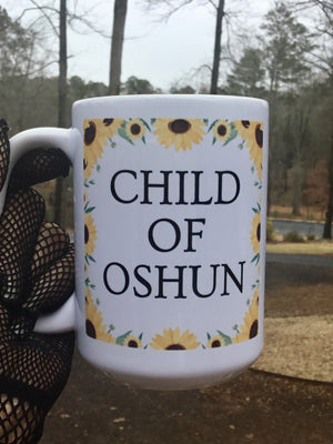 Honor your love for the Orisha Goddess Oshun, and your love for coffee or tea with our stylish Ceramic Mug featuring a beautiful Orisha, Child of Oshun design. Made from high-quality white ceramic, this durable 15oz mug is perfect for your daily refill and makes a thoughtful gift for any caffeine or tea lover. Add some personality to your drinkware collection with rounded corners and a comfortable C-handle." Microwave and dishwasher safe.