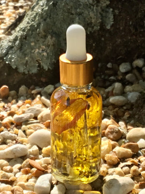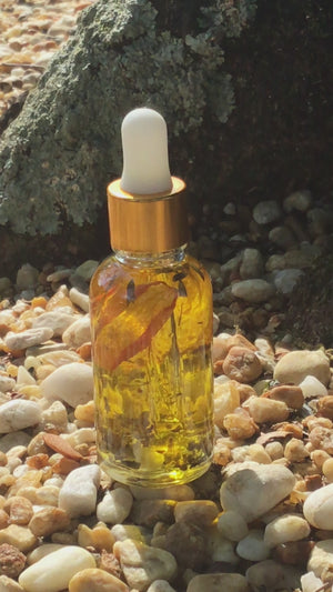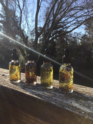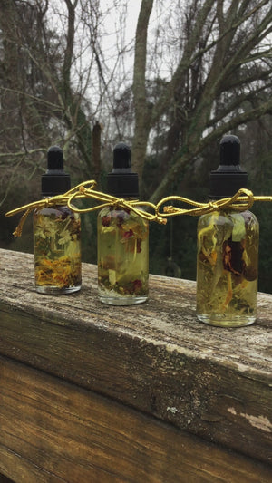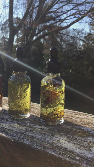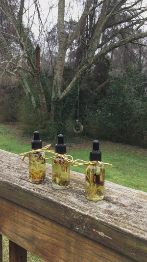 *Note all oils are made upon order. Each is made to assist in bringing about certain conditions. They are not perfumes and shouldn't be expected to be strongly scented. Also, images are shown to showcase the ingredients and the purpose of the oil. We don't guarantee this oil will look exactly like the image. The focus is on the ingredients and intention, and not matching each creation to the picture.