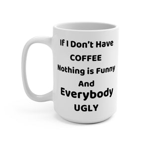 If I Dont Have Coffee Nothing Is Funny And Everybody Ugly 15oz Mug. This 15oz ceramic mug is perfect for coffee or tea lovers who need a caffeine boost. Its high-quality sublimation printing and durable material make it a great gift. With a large capacity and microwave and dishwasher safe design, you'll never run out of your favorite beverage.