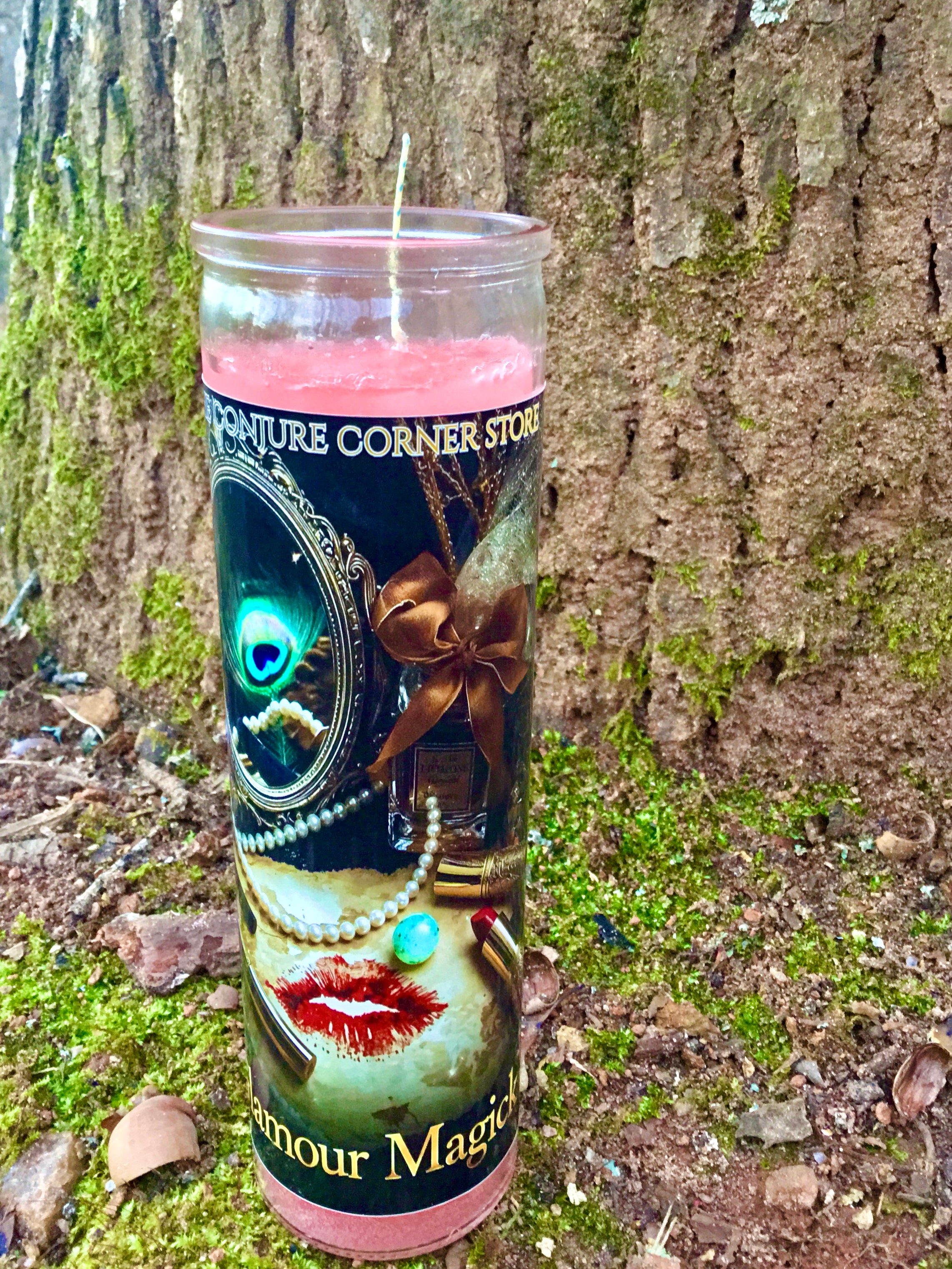 Glamour magick is the art of enchanting your aura and shifting how the world sees you and how you see yourself. This isn’t just about physical beauty; it’s about embodying confidence, charm, and magnetic presence. Our Hoodoo-inspired candle is meticulously prepared with intention, herbs, oils, and curios known in conjure work for drawing beauty, grace, and personal power. This candle is available fixed or unfixed. Unfixed is a plain candle as pictured without herbs, oils, and other curios added to dress the candle.