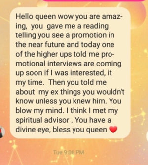 A full reading also means we will use any other form of divination tool needed to get to the bottom of any issues, or questions in addition to the tarot cards if needed. We will ask your spirit guides and honorable ancestors for guidance,and input about any issue or endeavor.