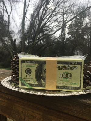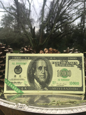 Joss paper can also be placed on ancestral and money altars to draw in prosperity. This is sold in a pack of 15 pieces of joss paper. The domination of each note is $10,000.00 .