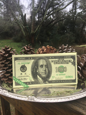 Joss paper,or Spirit money is used as an offering to our departed loved ones. As we offer our ancestors some of their favorite foods,drinks,vices such as alcohol and tobacco, money should also be offered to keep our ancestors financially stable in the afterlife. Joss paper is usually burned in fire proof containers before,or after rituals. I like to mist Florida water,or Kananga water on mine before I burn it to help invite them in to receive the offering. Both the Florida,and the Kananga water colognes can be purchased in the shop.