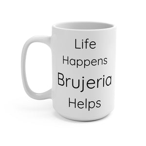 Life Happens Brujeria Helps Mug 15oz. There's never too much coffee! A big size (15oz) white, durable ceramic mug. High quality sublimation printing makes it an appreciated gift to every true coffee or tea lover, who always asks for a refill.